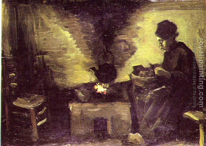 Peasant woman,Sitting by the Fire by Vincent Van Gogh