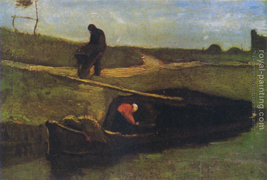* Hand-painted Vincent Van Gogh Oil Painting Reproduction : Peat boat with two figures