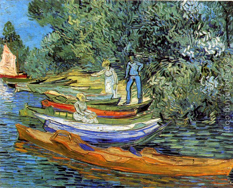 * Hand-painted Vincent Van Gogh Oil Painting Reproduction : Riverbank with Rowboats and Three Figures