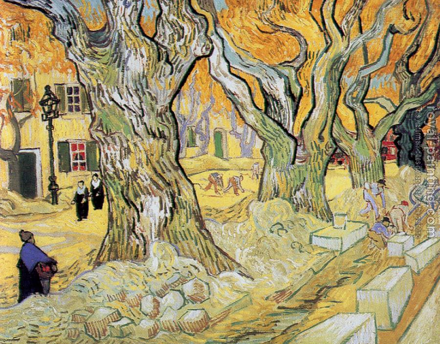 * Hand-painted Vincent Van Gogh Oil Painting Reproduction : Road Menders in a Lane with Massive Plane Trees