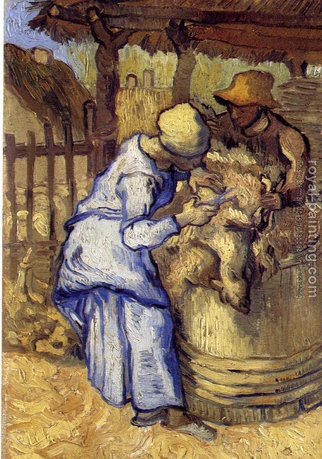 * Hand-painted Vincent Van Gogh Oil Painting Reproduction : Sheep-Shearers(after Millet)