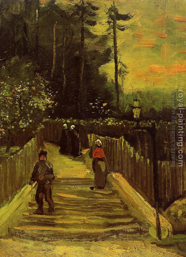 * Hand-painted Vincent Van Gogh Oil Painting Reproduction : Sloping Path in Montmartre