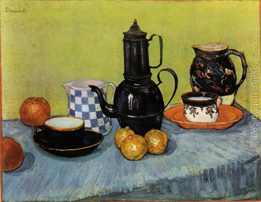 Still Life, Blue Enamel Coffeepot, Earthenware and Fruit by Vincent Van Gogh