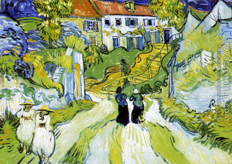 * Hand-painted Vincent Van Gogh Oil Painting Reproduction : Street and Stairs with Five Figures