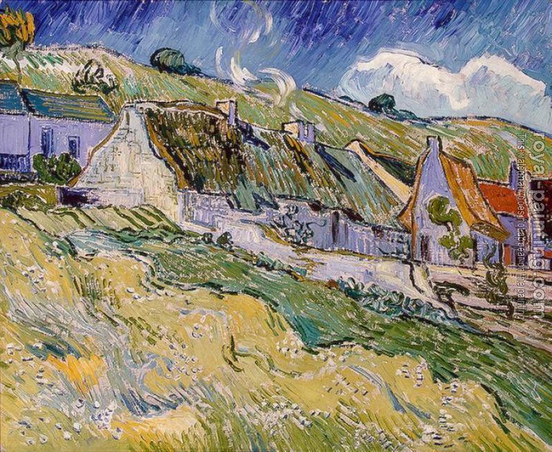 * Hand-painted Vincent Van Gogh Oil Painting Reproduction : Thatched Cottages