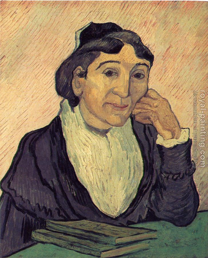 * Hand-painted Vincent Van Gogh Oil Painting Reproduction : The Arlesienne(Madame Ginoux), with Cherrg Colored Background