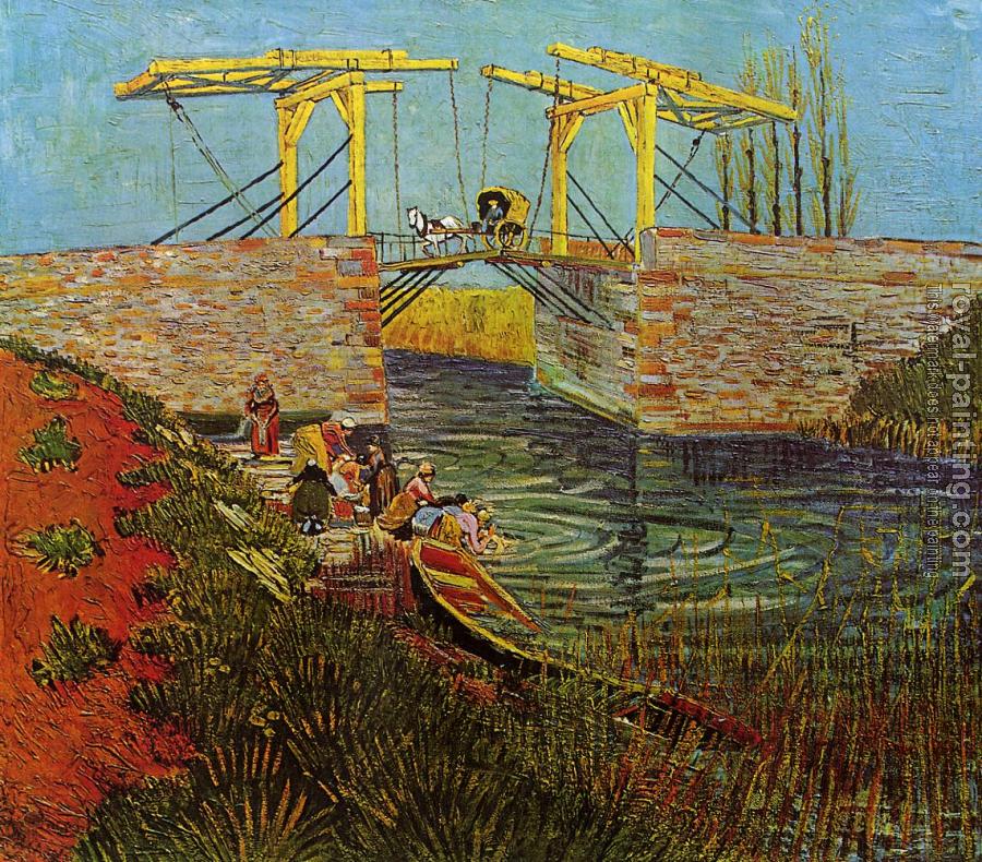 * Hand-painted Vincent Van Gogh Oil Painting Reproduction : The Langlois Bridge at Arles with Women Washing III