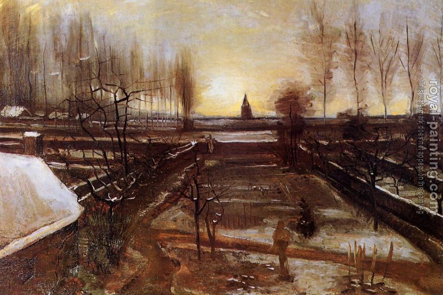 * Hand-painted Vincent Van Gogh Oil Painting Reproduction : The Parsonage Garden at Nuenen in the Snow