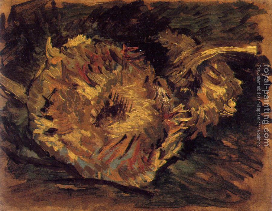 Two Cut Sunflowers,One Upside Down by Vincent Van Gogh