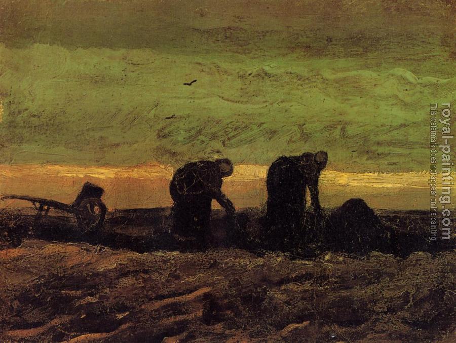 * Hand-painted Vincent Van Gogh Oil Painting Reproduction : Two Peasant Women in the Peat Fields