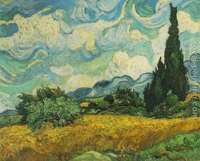 * Hand-painted Vincent Van Gogh Oil Painting Reproduction : Wheat Field with Cypresses at the Haute Gallinle Near Eygali