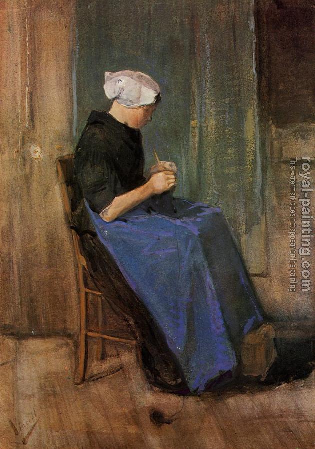 Young Scheveningen Woman, Knitting by Vincent Van Gogh