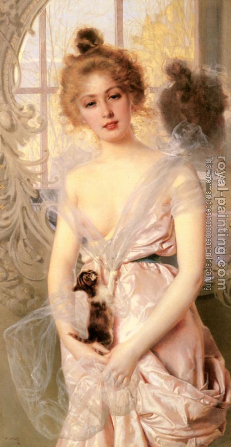 * Hand-painted Vittorio Matteo Corcos Oil Painting Reproduction : The New Kitten