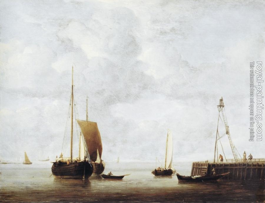 A Dutch Hoeker at Anchor near a Pier by Willem Van De Velde The Younger