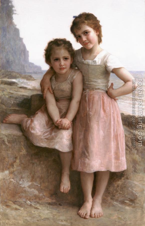 * Hand-painted William-Adolphe Bouguereau Oil Painting Reproduction : On the Rocky Beach