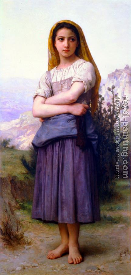 * Hand-painted William-Adolphe Bouguereau Oil Painting Reproduction : The Knitter