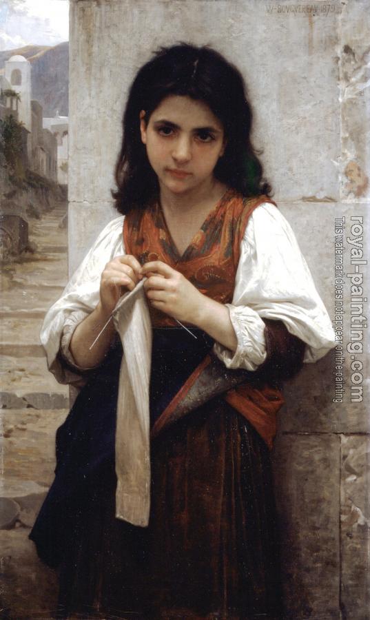 * Hand-painted William-Adolphe Bouguereau Oil Painting Reproduction : The Little Knitter III