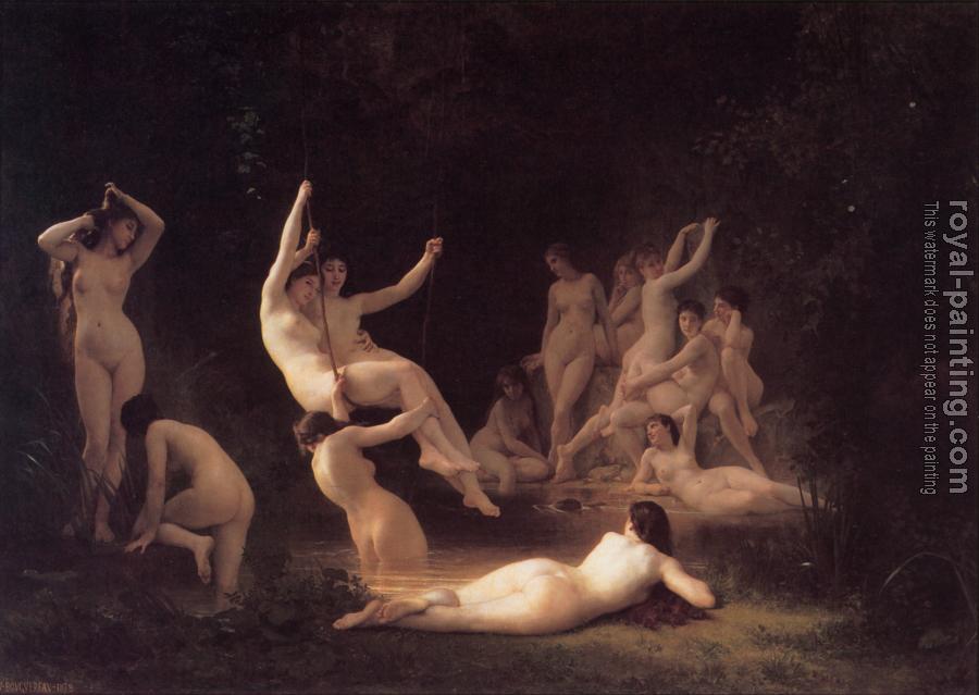 * Hand-painted William-Adolphe Bouguereau Oil Painting Reproduction : The Nymphaeum