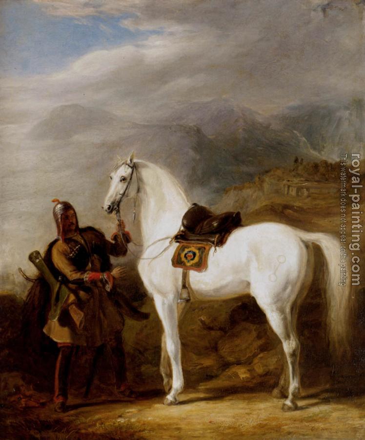 * Hand-painted William Allan Oil Painting Reproduction : A Circassian chief preparing his stallion
