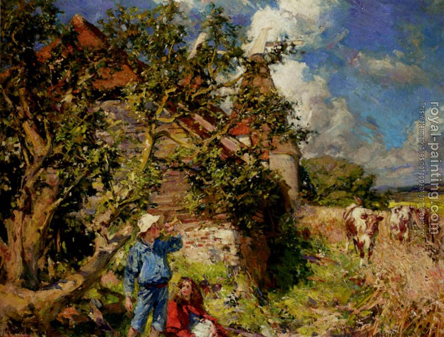 * Hand-painted William Christian Symons Oil Painting Reproduction : Little Boy Blue And Red Riding Hood