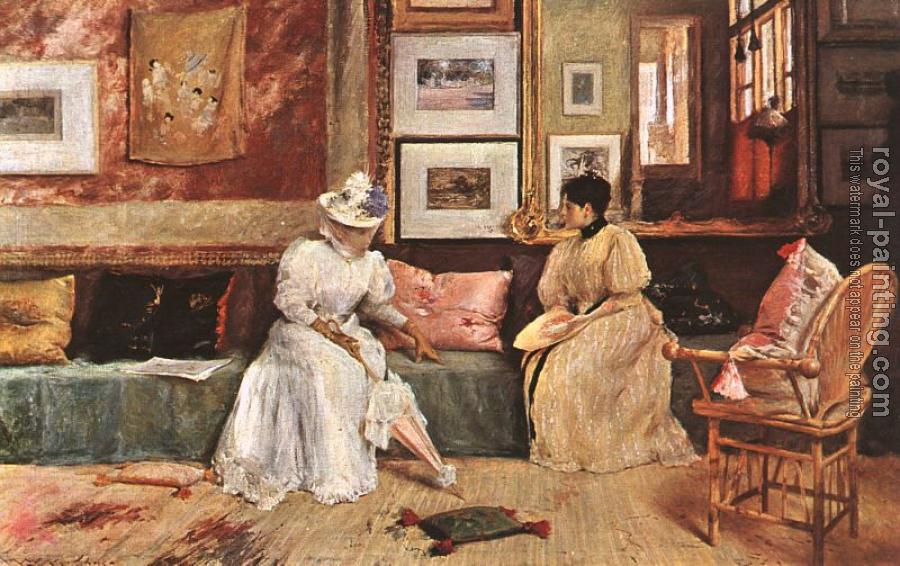 * Hand-painted William Merritt Chase Oil Painting Reproduction : A Friendly Visit