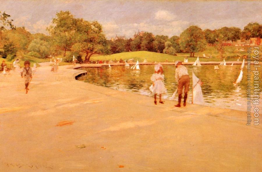 * Hand-painted William Merritt Chase Oil Painting Reproduction : Lilliputian Boat-Lake