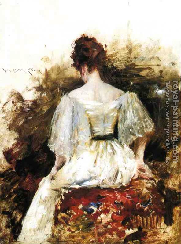 * Hand-painted William Merritt Chase Oil Painting Reproduction : Portrait of a Woman The White Dress