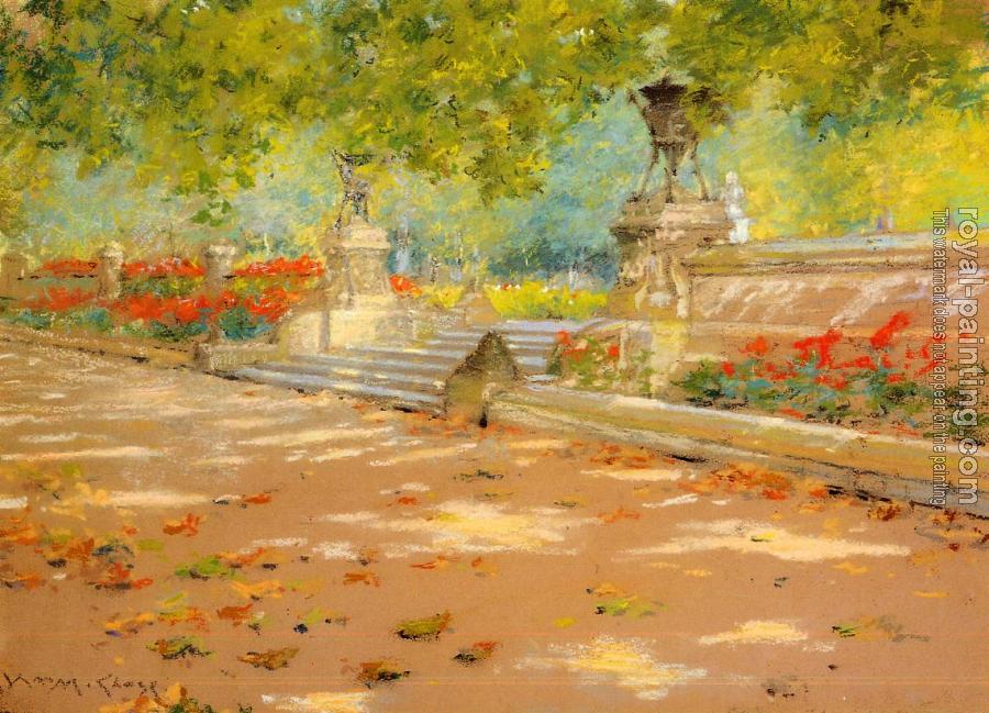 * Hand-painted William Merritt Chase Oil Painting Reproduction : Terrace Prospect Park