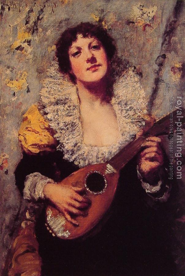 * Hand-painted William Merritt Chase Oil Painting Reproduction : The Mandolin Player