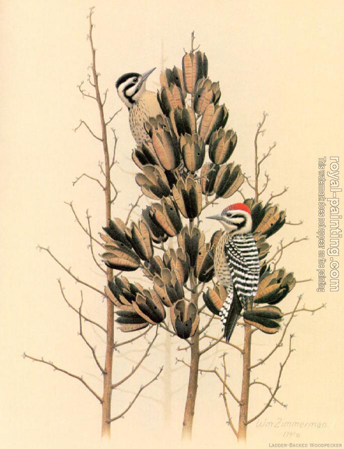 * Hand-painted William Zimmerman Oil Painting Reproduction : Ladder-backed Woodpecker