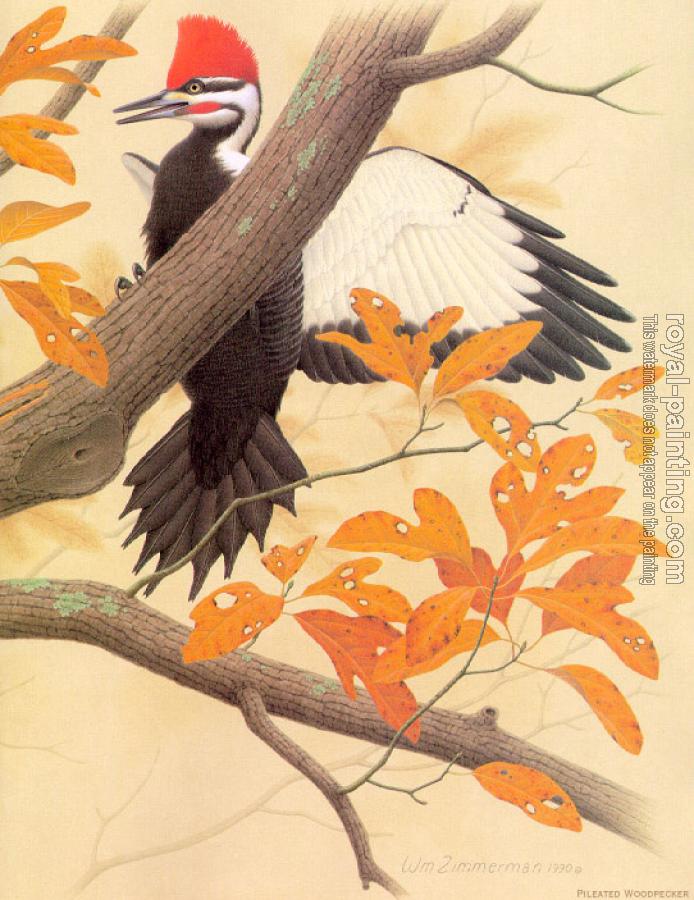 * Hand-painted William Zimmerman Oil Painting Reproduction : Pileated Woodpecker II