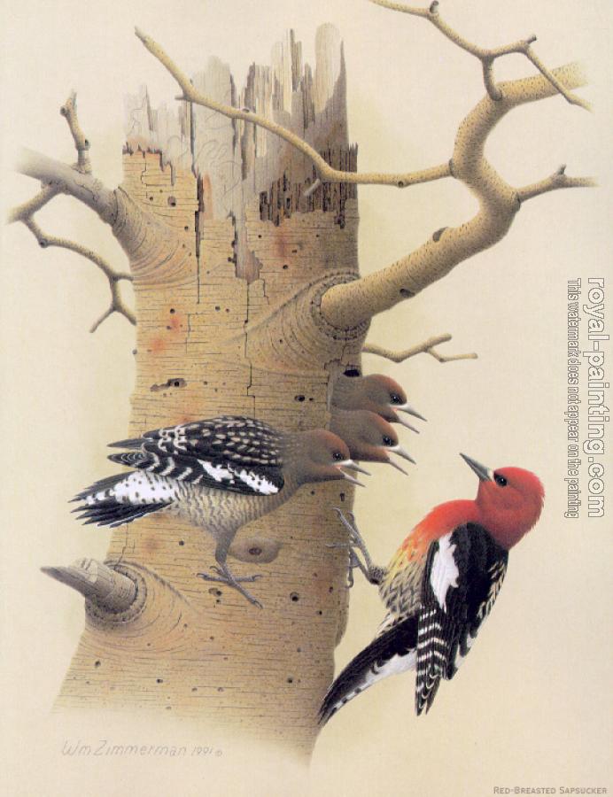 * Hand-painted William Zimmerman Oil Painting Reproduction : Red-breasted Sapsucker