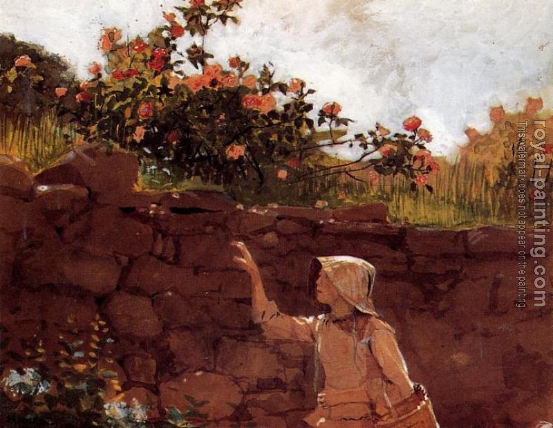 * Hand-painted Winslow Homer Oil Painting Reproduction : Girl in a Garden