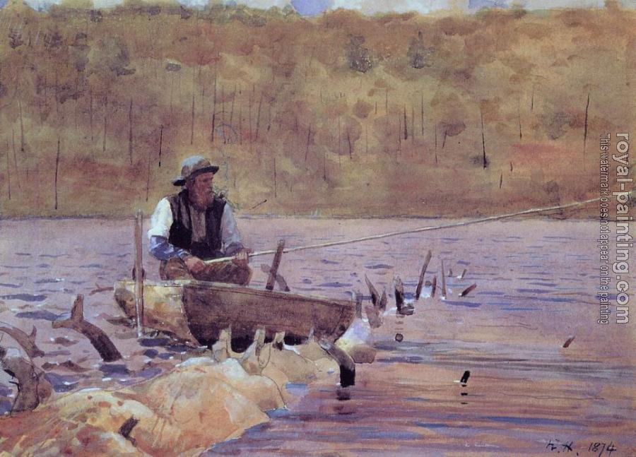 * Hand-painted Winslow Homer Oil Painting Reproduction : Man in a Punt, Fishing