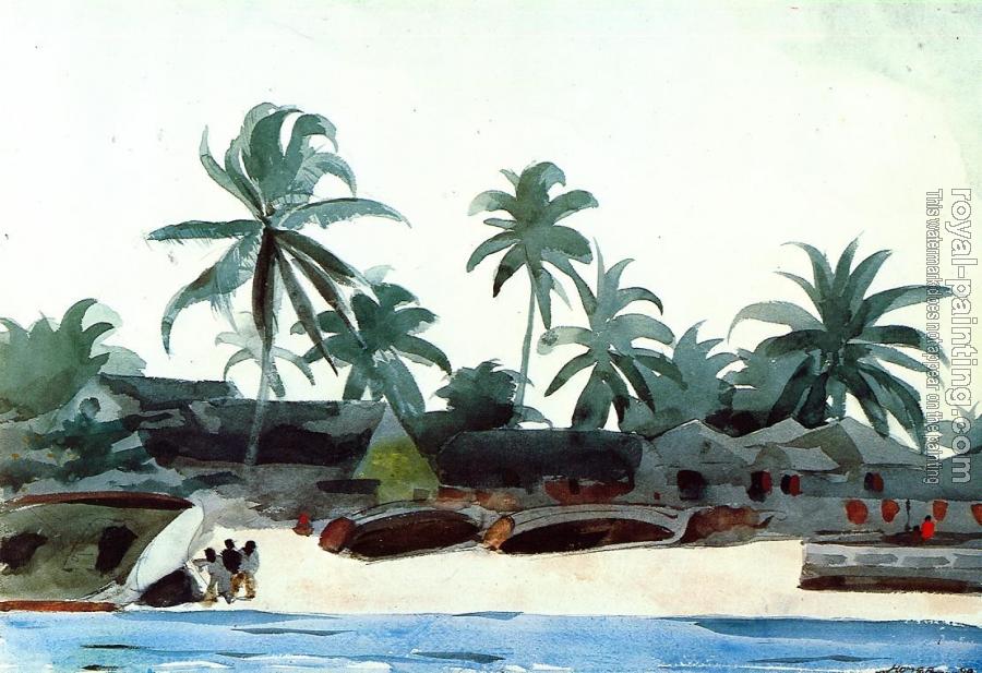 * Hand-painted Winslow Homer Oil Painting Reproduction : Negro Cabins and Palms