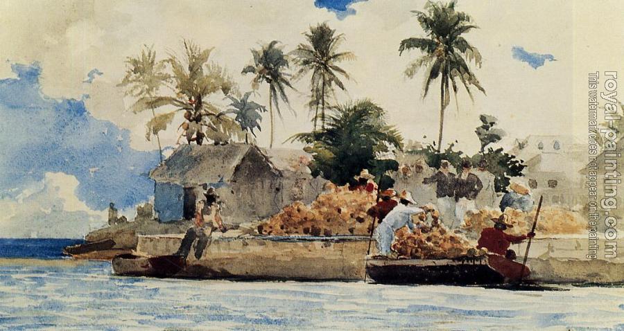 * Hand-painted Winslow Homer Oil Painting Reproduction : Sponge Fishing Nassau