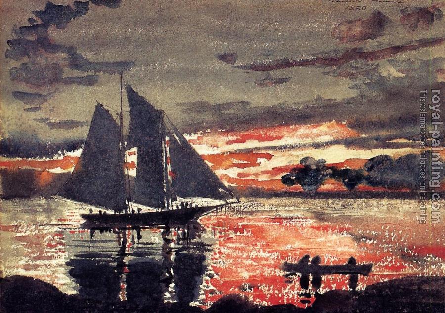 * Hand-painted Winslow Homer Oil Painting Reproduction : Sunset Fires