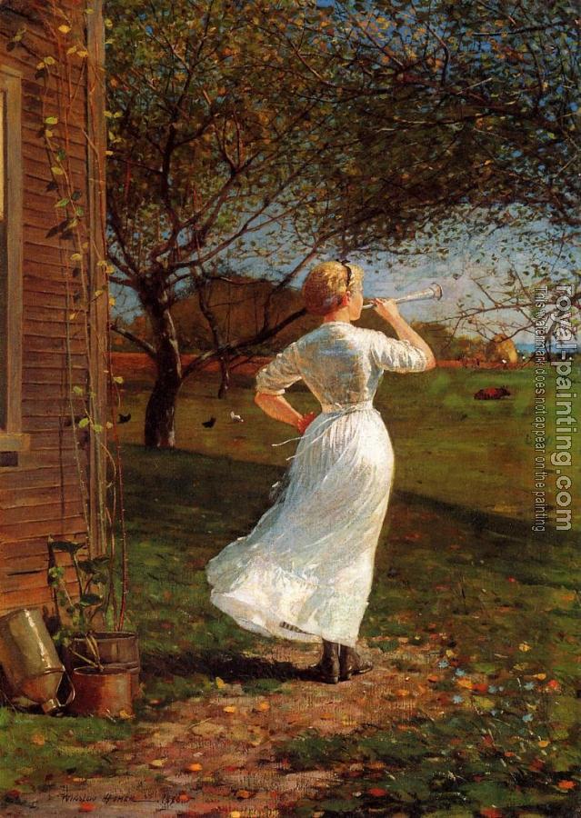 * Hand-painted Winslow Homer Oil Painting Reproduction : The Dinner Horn II