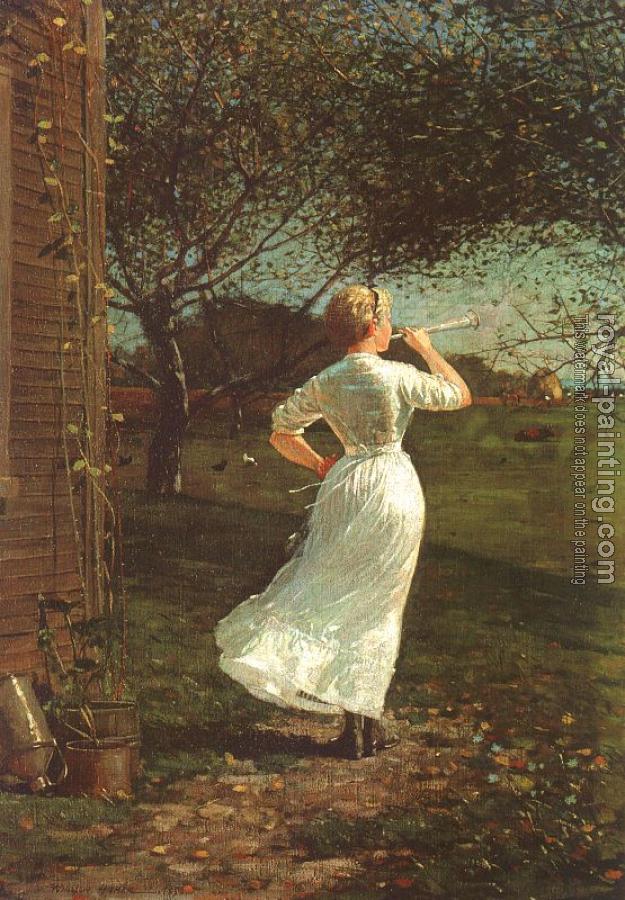 * Hand-painted Winslow Homer Oil Painting Reproduction : The Dinner Horn