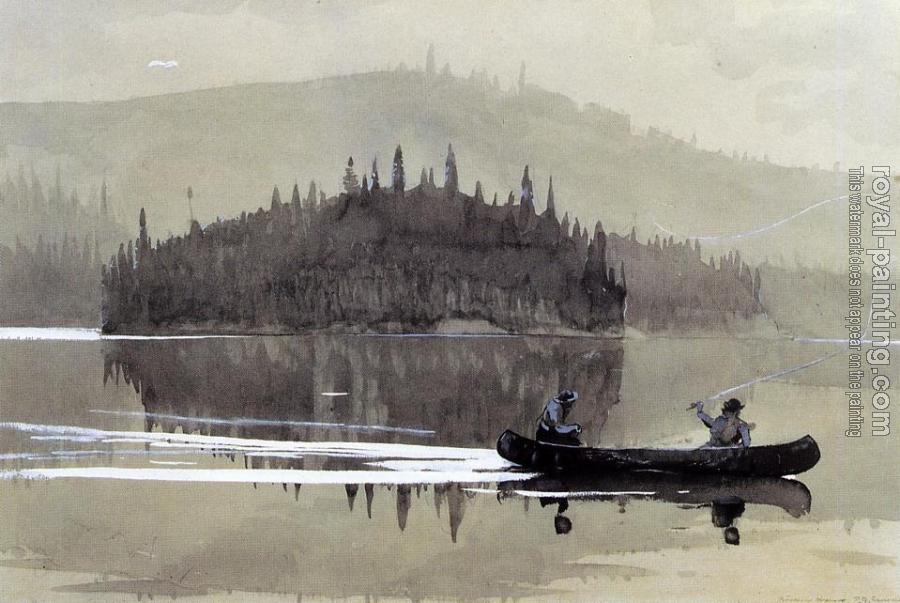 * Hand-painted Winslow Homer Oil Painting Reproduction : Two Men in a Canoe II