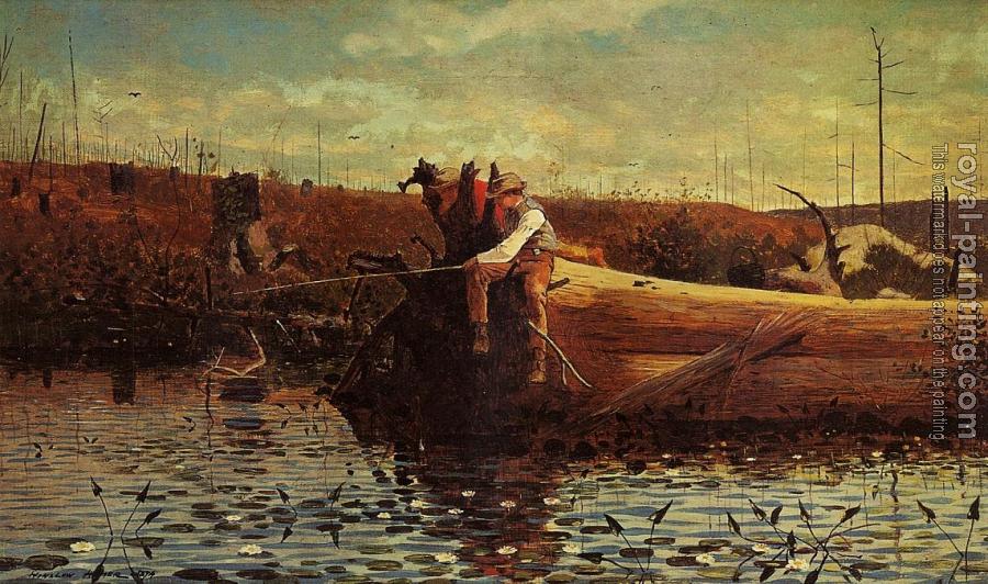 * Hand-painted Winslow Homer Oil Painting Reproduction : Waiting for a Bite