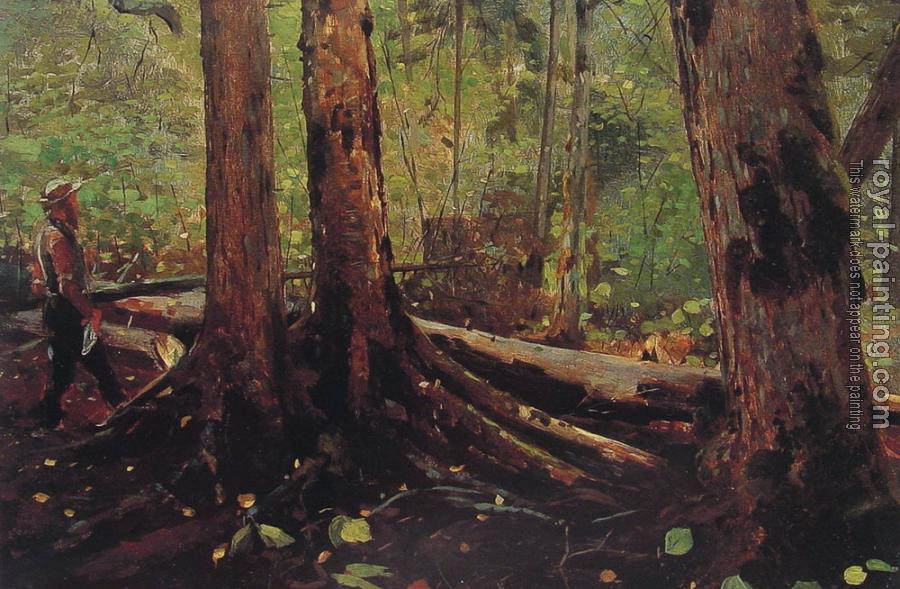 * Hand-painted Winslow Homer Oil Painting Reproduction : Woodchopper in the Adirondacks