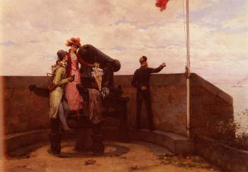 A Winter Landscape With Numerous Skaters On A Frozen Waterway
