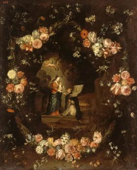 Madonna with the Child and St Ildephonsus Framed with a Garland of Flowers