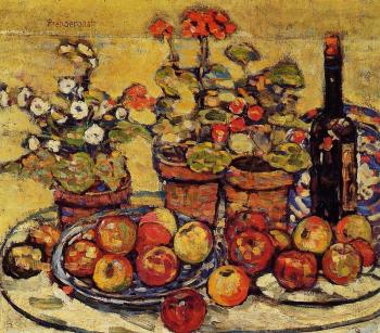 Still Life, Blue Enamel Coffeepot, Earthenware and Fruit