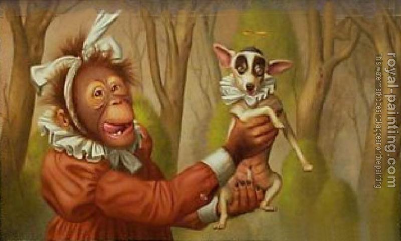 * Hand-painted Oil Painting Reproduction : Dressing monkey