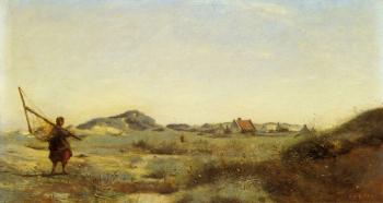 Le Batelier Quittant La Rive Avec Une Femme Et Un Enfant Assis Dans Sa Barque, Soleil Couchant