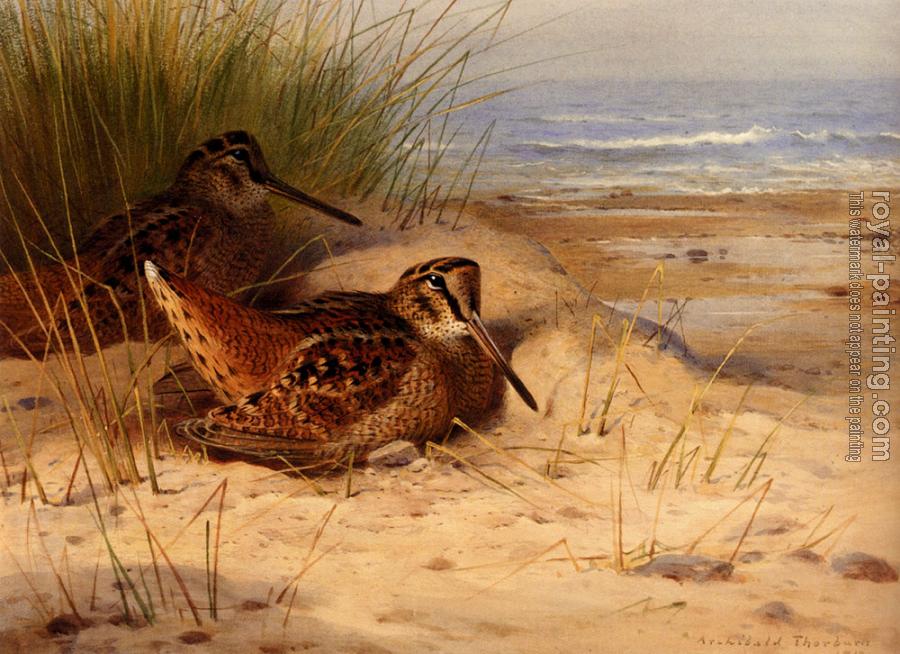 Archibald Thorburn: Woodcock Nesting On A Beach
