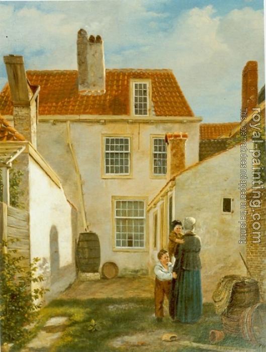 Bartholomeus Johannes Van Hove: Moeder met twee kinderen op achterplaats