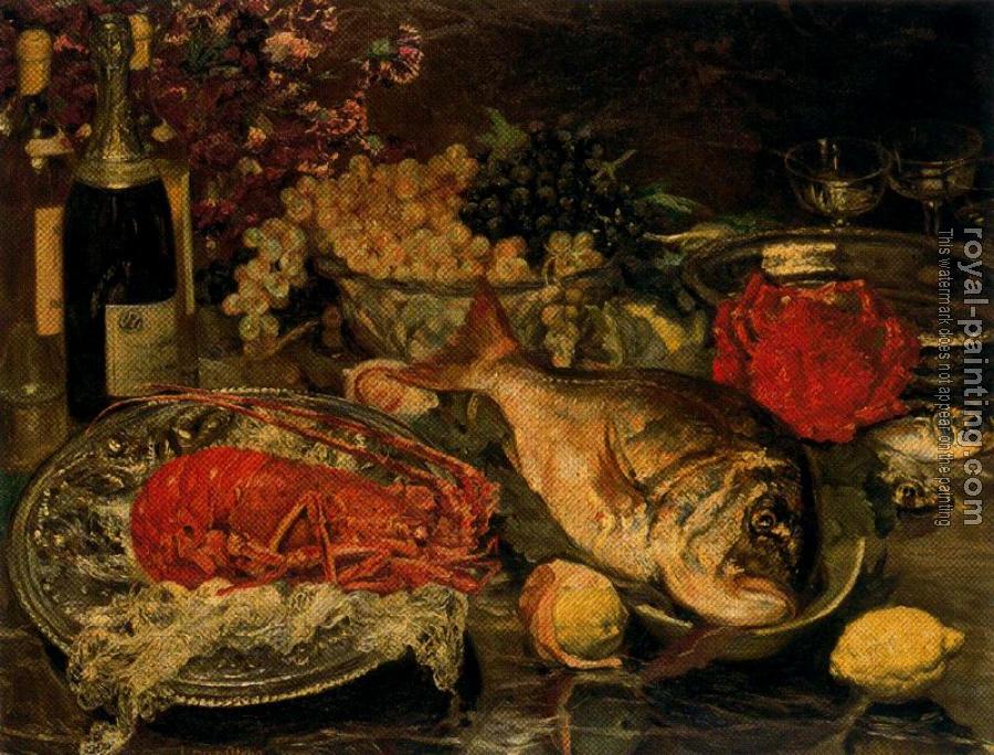 Ignacio Diaz Olano: Bodegon navideno con pescados